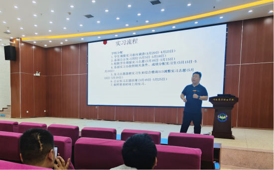 会上,实习办公室杜唯老师就实习分配流程、岗位基本情况、实习期间安全、相关管理制度及实习生毕业就业指导等内容进行了详细地介绍,并对学生关切的、实习中常见的问题进行了现场交流和指导。