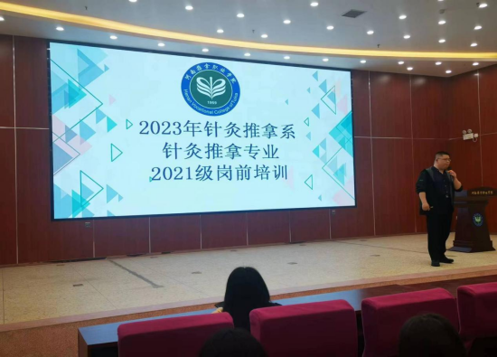 为了使针灸推拿系2021级学生顺利进入实习岗位,进一步规范实习生管理,规范实习行为,提高实习的积极性,使同学们能更快更好的进入实习岗位,适应新生活,我系于4月17日-4月20日,举行了新一批实习生的岗前培训。