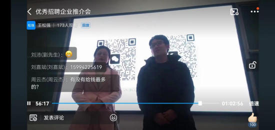 其中好轻松人事部经理戎春兰通过播放企业宣传片,在介绍企业历史、文化环境的基础上,重点介绍了同学们尤为关注的招聘流程、实习时间、工作内容、考核标准以及薪资待遇等方面的情况。其次,在现场互动环节,同学们积极与经理互动交流,围绕工作内容、培养方式等进行了一系列的问答与热烈讨论,各个企业负责人从就业方向、就业措施、注意事项三方面进行了解读。对当前就业形势进行了分析,强调要树立正确就业观念,多方位关注就业信息,正视自己的能力和竞争力,选择合适的实习单位,同时也表示非常期待同学们前去实习。
