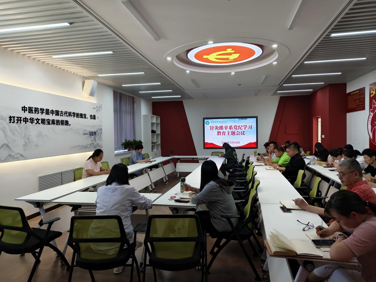 5月14日下午,针灸推拿系党总支在综合楼南316党员活动中心开展党纪学习教育主题党日活动,系党总支全体党员参会,会议由党总支宣传委员、系副主任陈蓉主持。