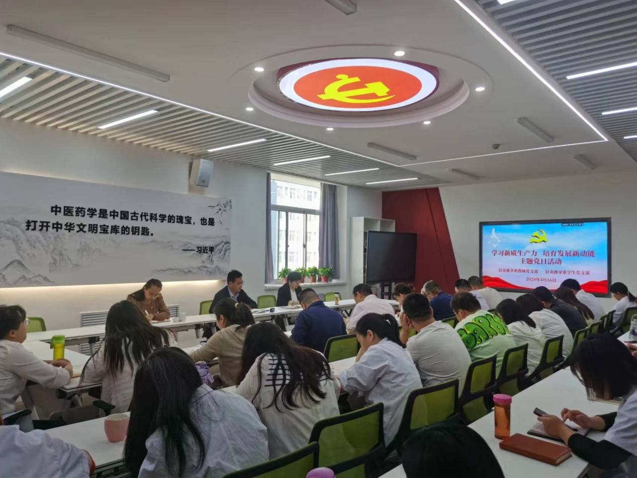 4月16日下午,针灸推拿系党总支在综合楼南316党员活动中心开展“学习新质生产力 培育发展新动能”主题党日活动,会议由总支副书记、系主任张占栋主持,系党总支全体党员参加。