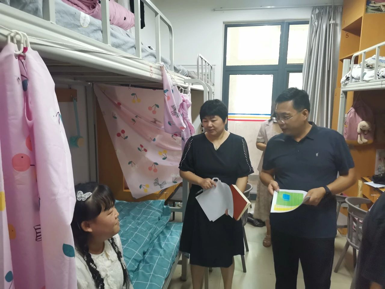 在新生宿舍走访过程中,张主任亲切地与同学们进行面对面交流,向同学们表达了诚挚的欢迎和祝福,并叮嘱同学们要尽快适应新生活,与老师、同学、舍友多多交流,共同进步!