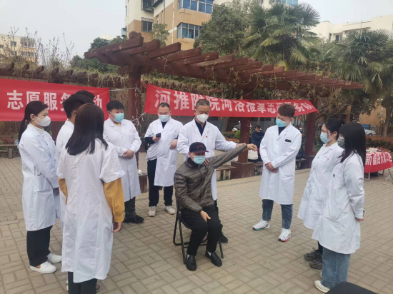 2023年3月21日上午、3月22日下午,针灸推拿系手法提升社20名学生跟随学院附属医院的推拿老师们一起走进涧西区华侨社区、龙西社区进行临床学习实践活动。