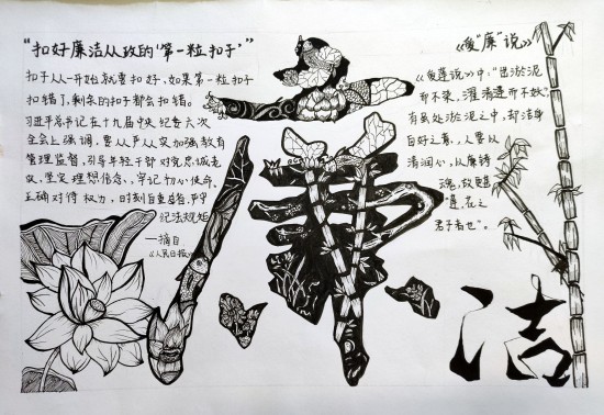 自系部活动方案下发后,各班团支部高度重视,并以本次手抄报比赛为契机,积极引导广大青年学生进行了一次富有意义的廉洁文化教育。经过各班团支部初步评选,最终提交135幅作品参加系部决赛。参赛作品集思想性与艺术性于一体,紧扣时代脉搏,突出廉洁主题,内容积极向上,弘扬新风正气,讽刺鞭挞腐败现象和不文明行为。最终,经过系部的评选,选出了30幅优秀作品代表系部参加学院的决赛。