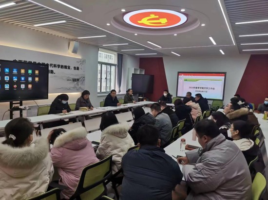 陈蓉副主任对春季学期教学工作进行部署,通报本学期课程安排、教材发放情况,敦促全体教师继续高标准、严要求做好日常备课,线上线下混合式教学准备。