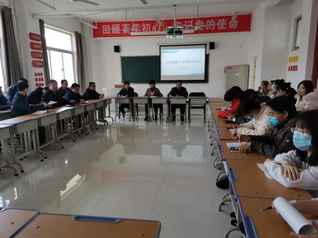 3月1日,针灸推拿系召开全体教师会议,在会上根据《河南省教育厅关于进一步提高全省高校就业创业指导服务水平的实施意见》 的工作要求,针灸推拿系党总支李梅芳书记和针灸推拿系张占栋主任做了就业工作动员发言。