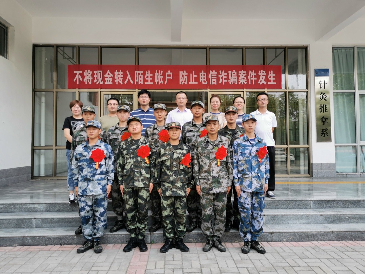 9月9日下午,针灸推拿系在综合楼东广场欢送2019年应征入伍大学生,系副主任张国强、路红普、辅导员代表及部分应征入伍大学生参加。