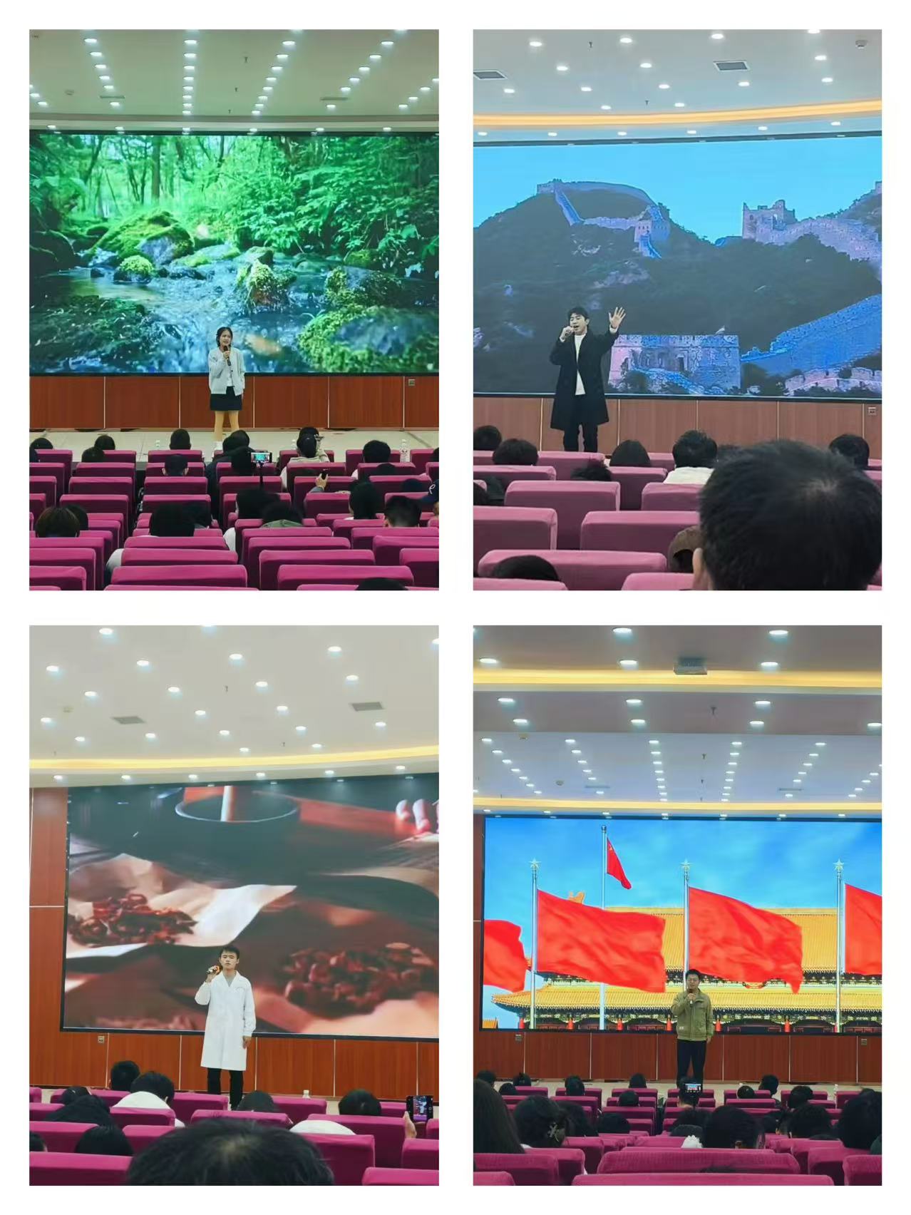 比赛现场,没有绚丽的舞台灯光和视觉特效,但每一位参赛同学都全情投入,从古典诗词到现代散文,他们用磁性的声音、真挚的情感诠释着文字的魅力。《黄帝内经》《大医精诚》似是与先哲对话,那蕴含着天地阴阳、人体奥秘的语句在空气中流淌,或激昂如金戈交鸣,阐述医理之精妙,或舒缓似潺潺溪流,道尽养生之要义。《少年中国说》《青春中国》展现出中华儿女的责任担当与豪情壮志,无论何时都以凛然的姿态书写着爱国华章。《祖国啊我亲爱的祖国》《月光下的中国》用那或激昂或恬静的文字,表达出我们对祖国最深切的热爱与眷恋。