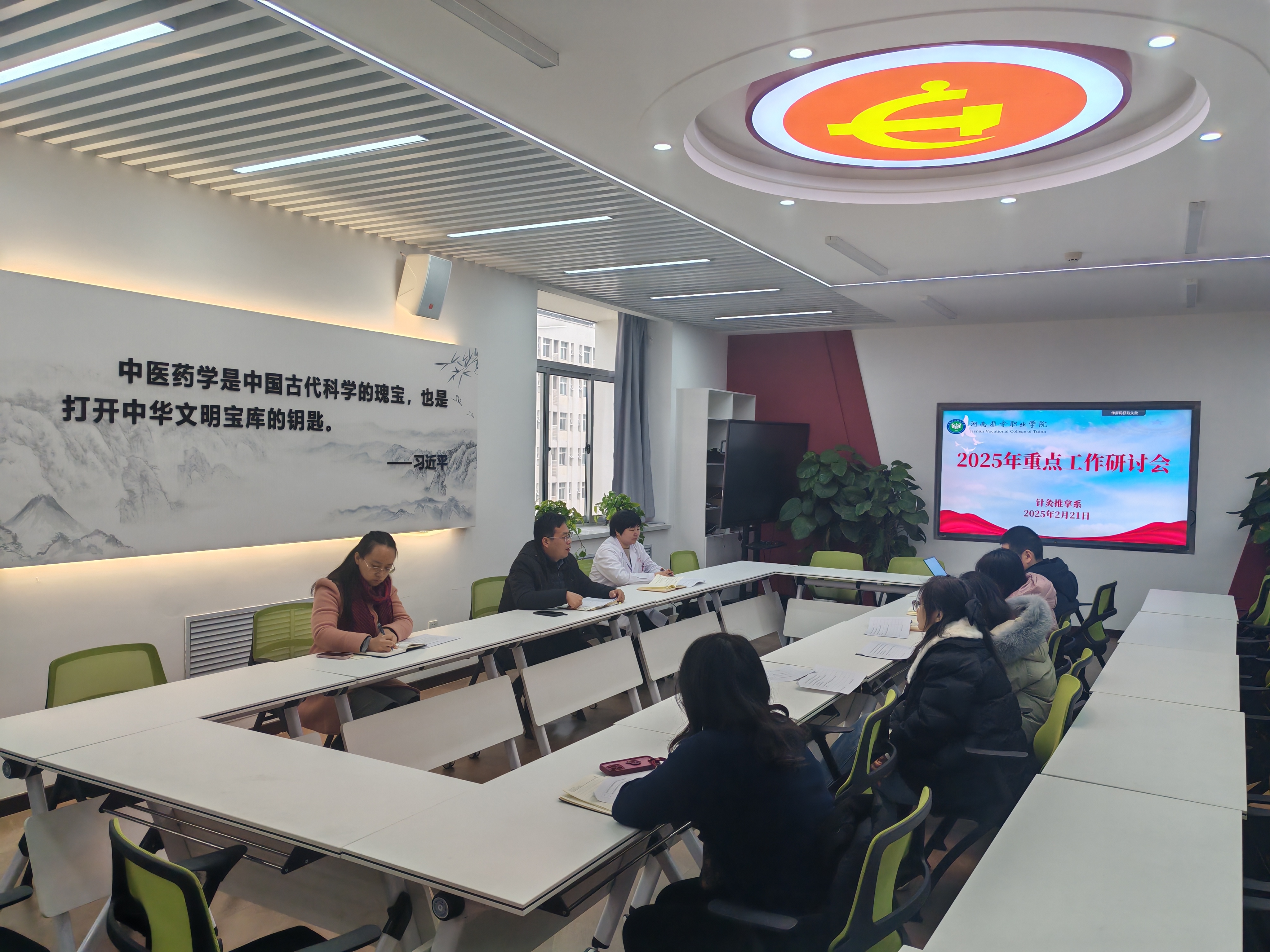 2月21日,针灸推拿系在综合楼南316召开2025年重点工作研讨会,旨在明确新一年的工作方向和目标,推动针灸推拿系各项事业再上新台阶。会议由针灸推拿系主任张占栋主持,各教研室主任及办公室主任参加了此次会议。