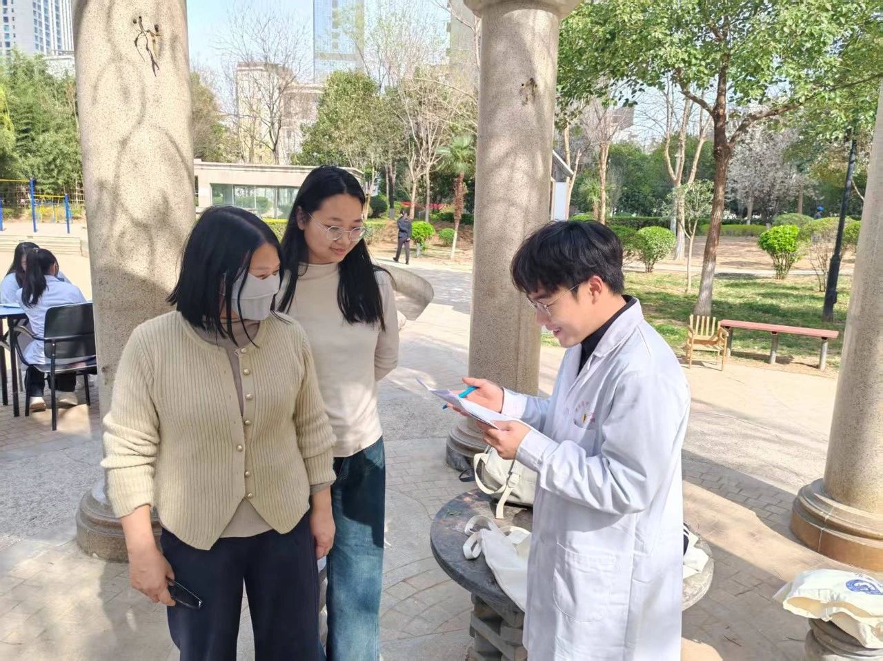 与此同时,社会调查小组穿梭于小区各个角落,以问卷调查的形式收集居民对健康服务的实际需求。这份调研不仅为学院的教学提供了宝贵的实践反馈,也为未来开展更加精准有效的社区服务奠定了基础。