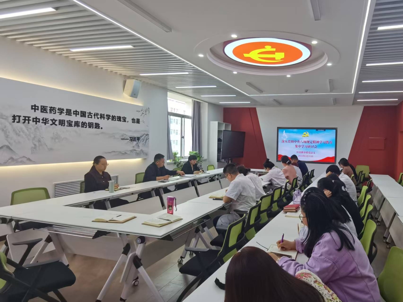 2025年4月15日下午,针灸推拿系党总支在综合楼南316会议室召开深入贯彻中央八项规定精神学习教育集中学习研讨会,会议由系党总支副书记、系部主任张占栋主持,全体教师党员参加。本次研讨会旨在通过系统学习与交流,进一步强化教师党员的作风建设意识,为职业教育高质量发展注入新动能。