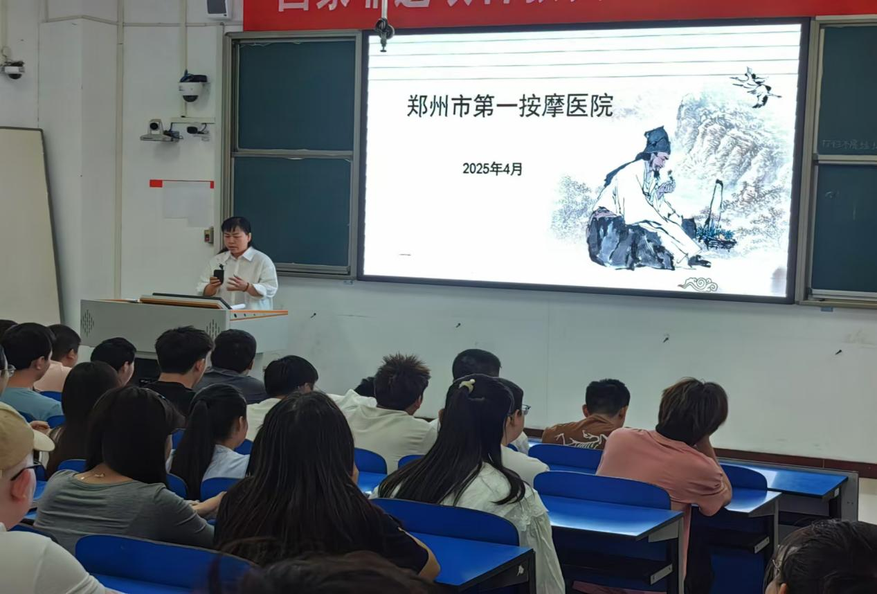 4月17日下午,针灸推拿系邀请郑州市第一按摩医院和河南推拿职业学院附属医院来我系进行实习岗位宣讲。