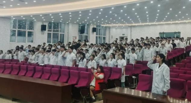 实习的号角已然吹响,全体同学在赵淮钤的领誓下,神情肃穆、声音铿锵,齐声重温医学生誓言。誓言字字千钧,凝聚着对医学事业的敬畏与热忱,也为即将开启的实习之路立下坚定信念。