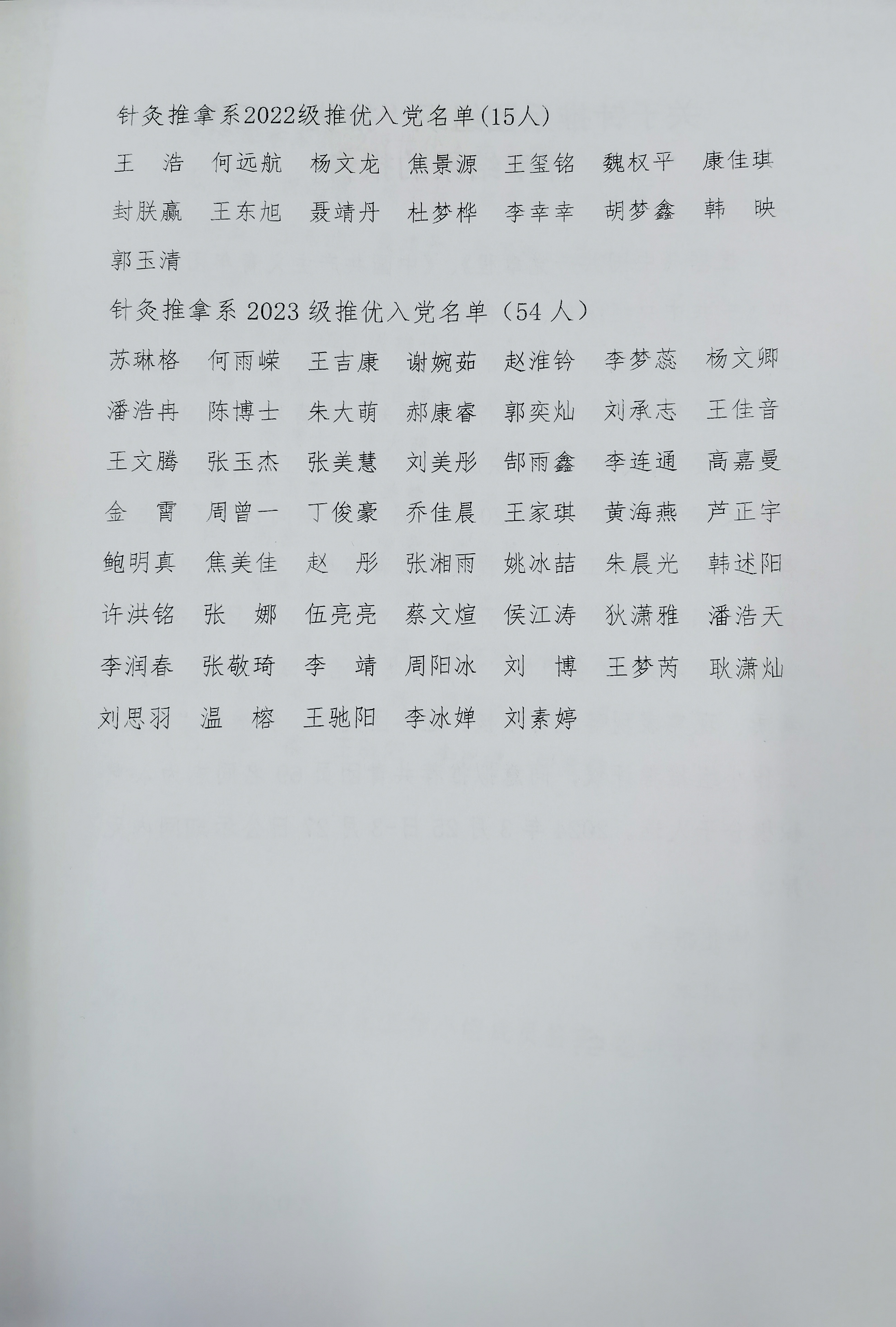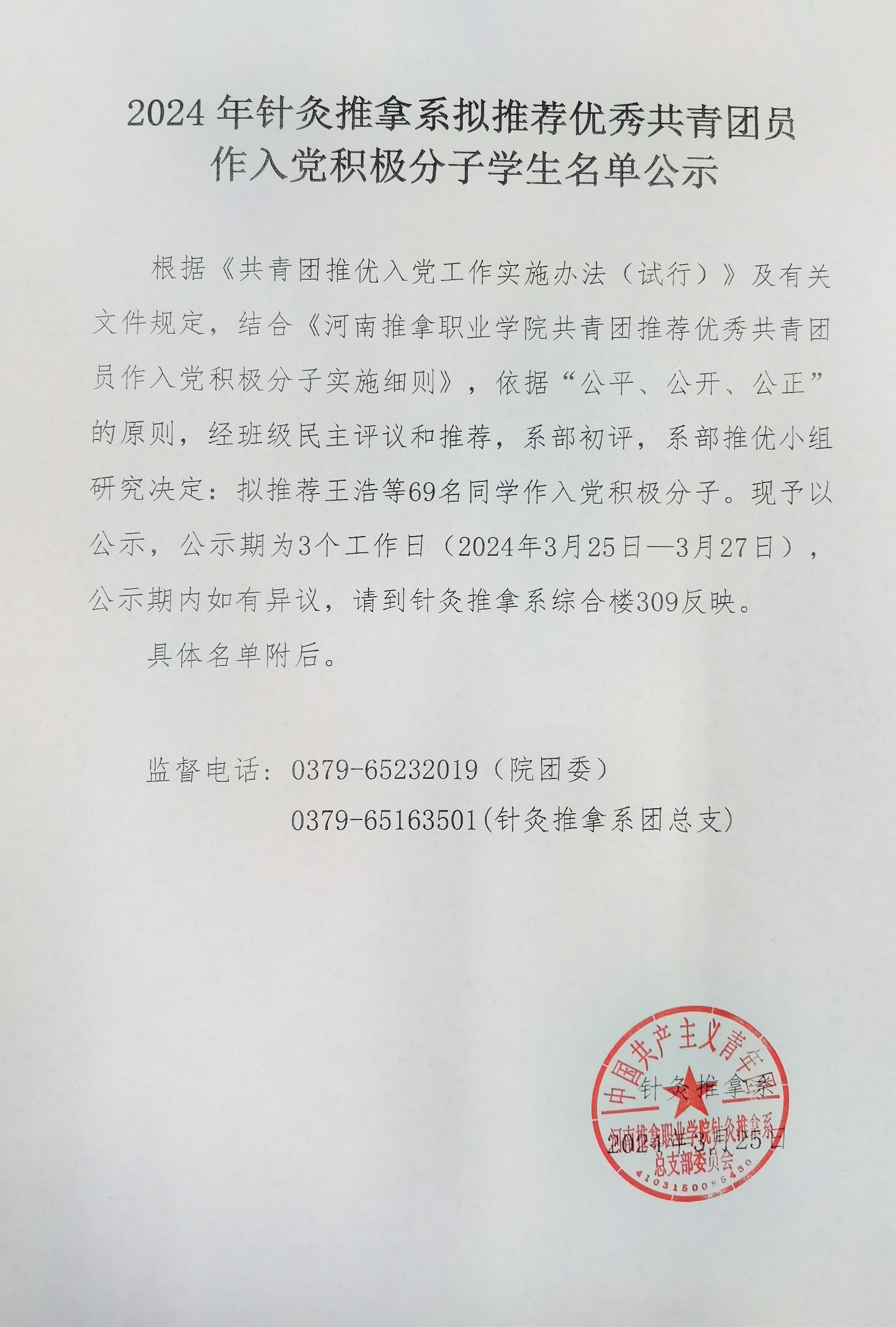2024年针灸推拿系拟推荐优秀共青团员作入党积极分子学生名单公示