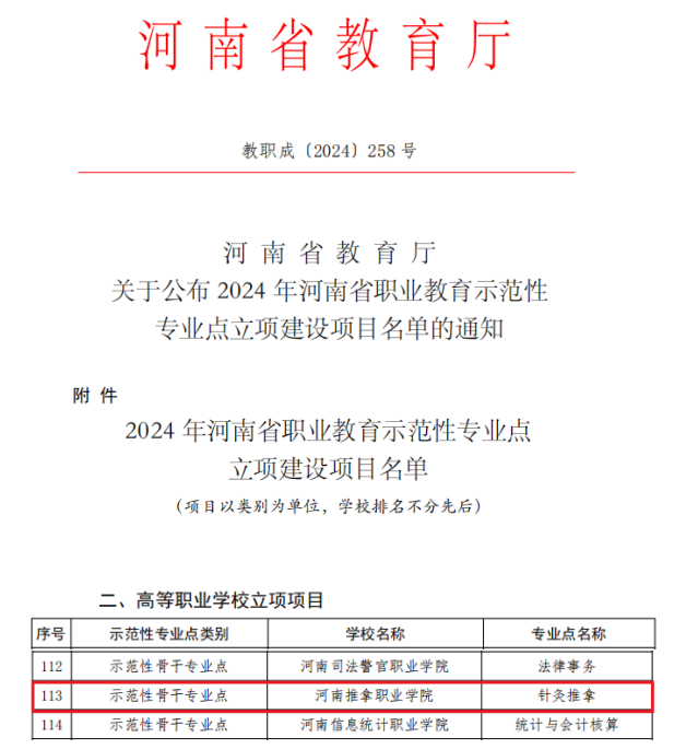 河南省职业教育示范性骨干专业点